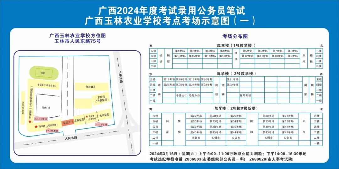 除考試當(dāng)天考生可以進(jìn)入考點(diǎn)外,考生不得提前進(jìn)入考點(diǎn)查看考場(chǎng)(學(xué)校將在大門處擺放考場(chǎng)分布示意圖),玉林考區(qū)10個(gè)考點(diǎn)的考場(chǎng)布置情況如下: