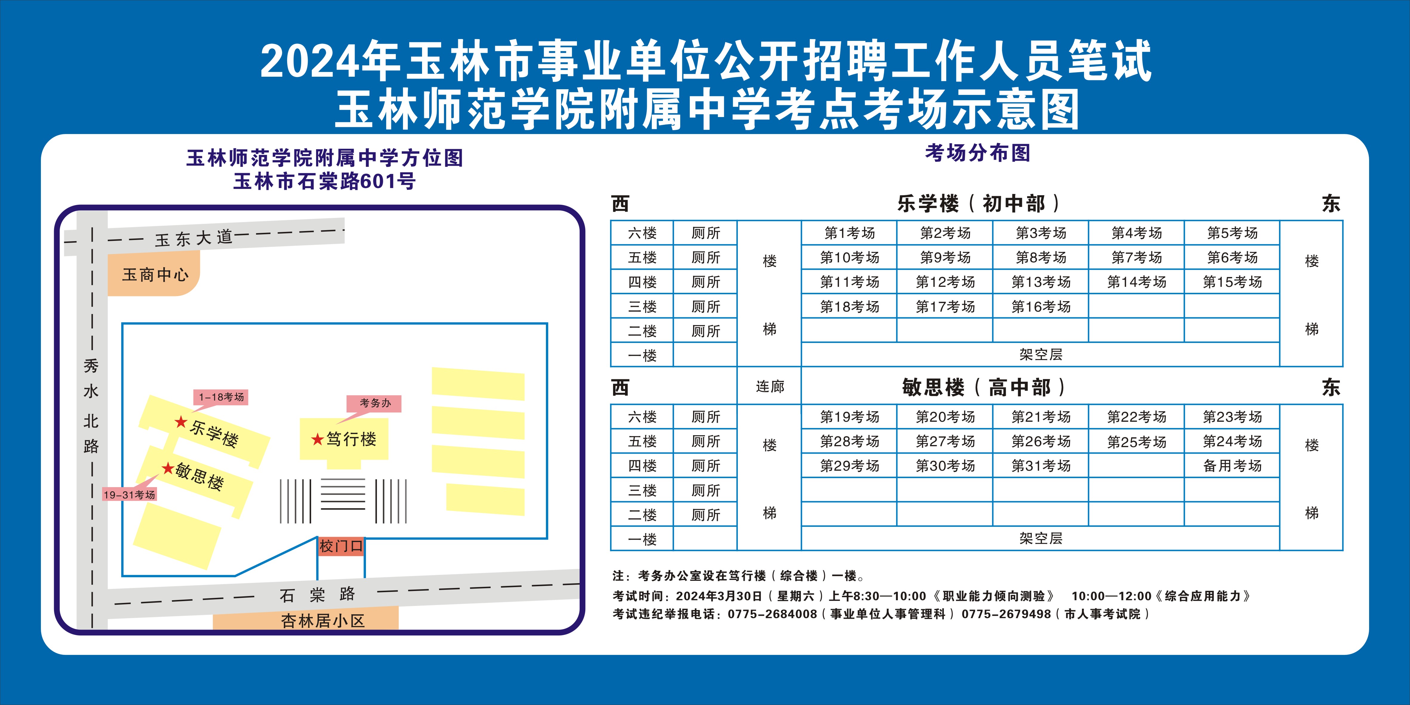 需要特別注意的是:玉林市第一職業(yè)中等專業(yè)學(xué)??键c(diǎn)是設(shè)在該校的東校區(qū)(人民東路東235號);玉林市第一中學(xué)考點(diǎn)是設(shè)在該校的運(yùn)嶺路校區(qū)(二環(huán)北路1228號)!