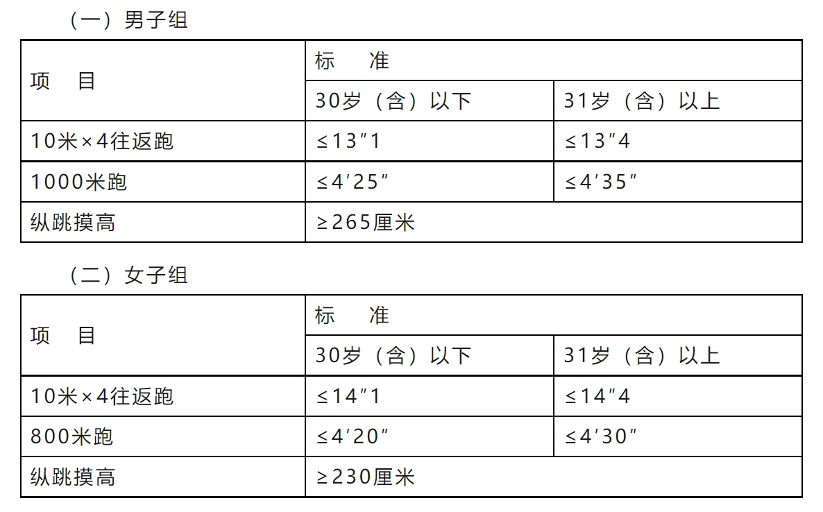 (三)測評標準中涉及的年齡計算時間截止到體能測評當月。
