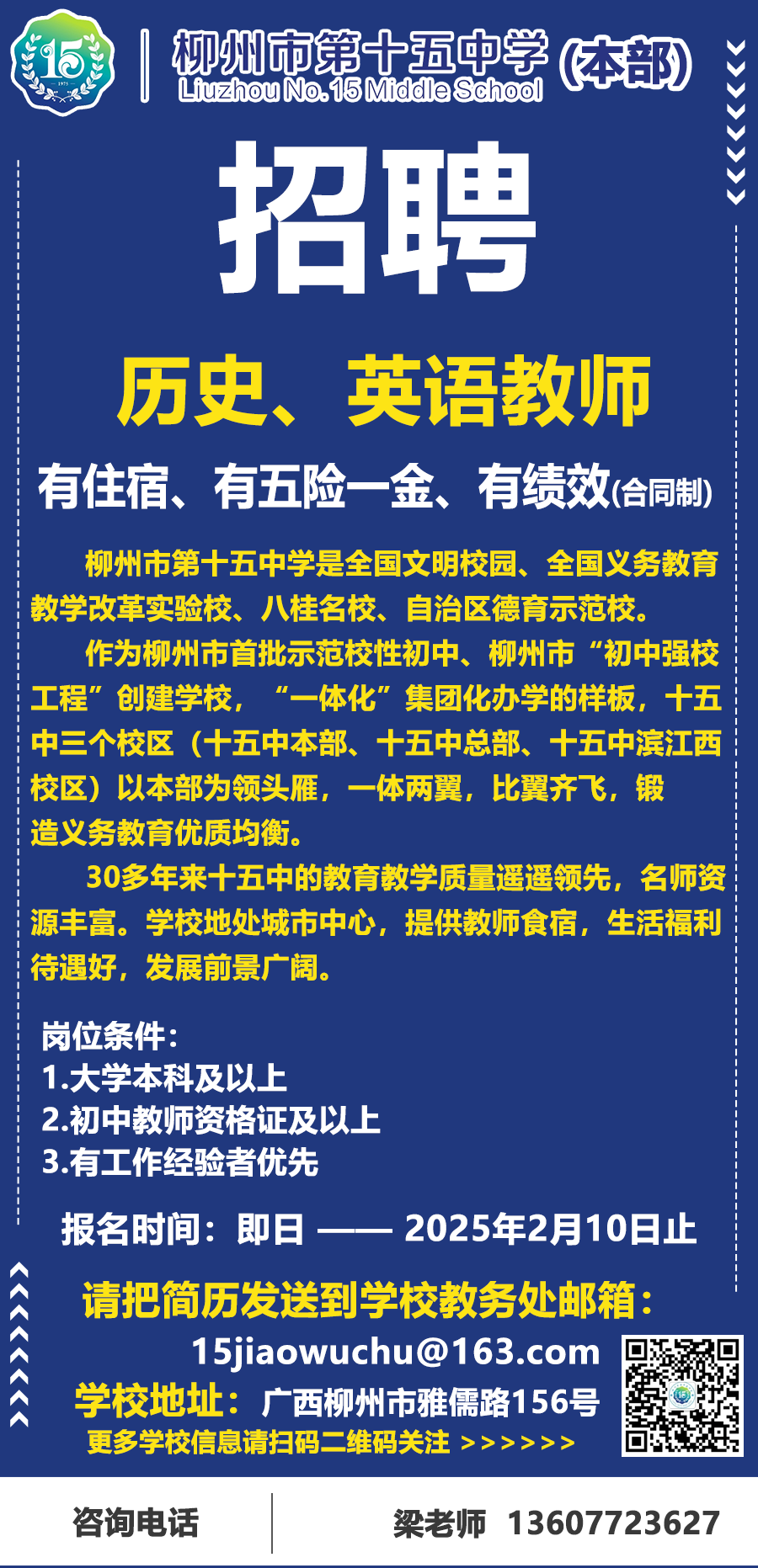 2025年柳州市第十五中學(xué)本部誠(chéng)聘歷史、英語老師