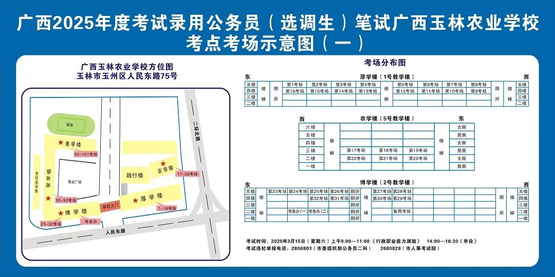 廣西2025年度考試錄用公務(wù)員(選調(diào)生)筆試將于3月15日舉行,為進一步提升玉林考區(qū)服務(wù)保障質(zhì)量,現(xiàn)就有關(guān)注意事項提示如下,請廣大考生做好應(yīng)試準(zhǔn)備工作,準(zhǔn)確掌握考試時間、考點地址及相關(guān)注意事項。