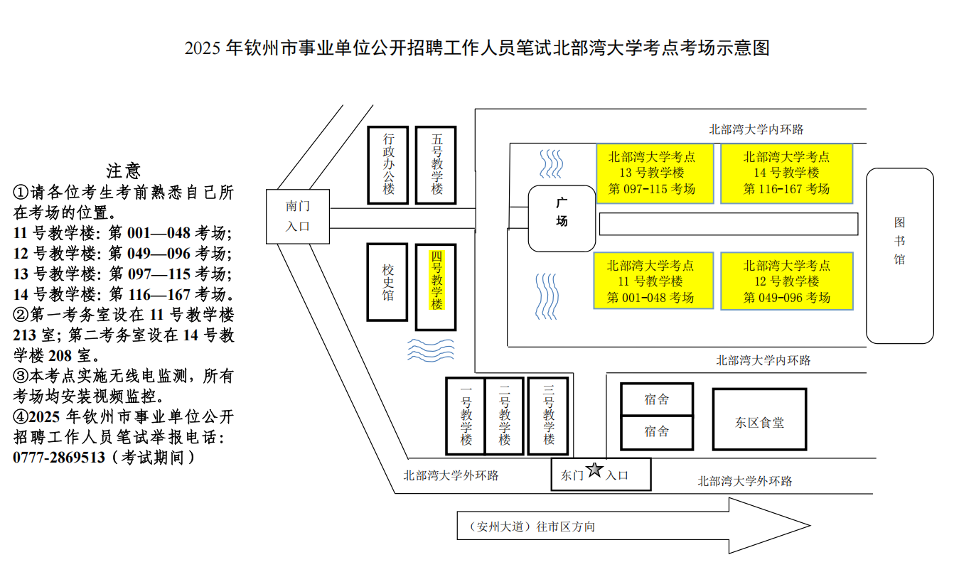 (二)請(qǐng)考生按照本人準(zhǔn)考證上的考點(diǎn)學(xué)校,提前了解學(xué)校所在位置,特別注意不要混淆北部灣大學(xué)考點(diǎn)與北部灣職業(yè)技術(shù)學(xué)校考點(diǎn)。部分考點(diǎn)學(xué)校離市區(qū)有一定距離,請(qǐng)關(guān)注當(dāng)天交通情況和天氣情況,充分考慮路途時(shí)間和天氣因素影響,提前謀劃出行時(shí)間、路線和交通工具,建議提前60分鐘到達(dá)考點(diǎn),以免影響正常入場(chǎng)參加考試。