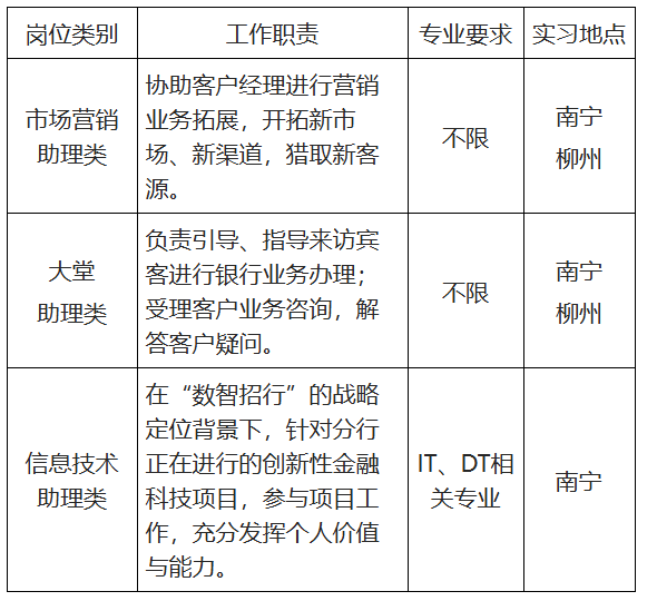 原文標題:“夢工場”招商銀行南寧分行2026屆暑期實習(xí)生招聘公告