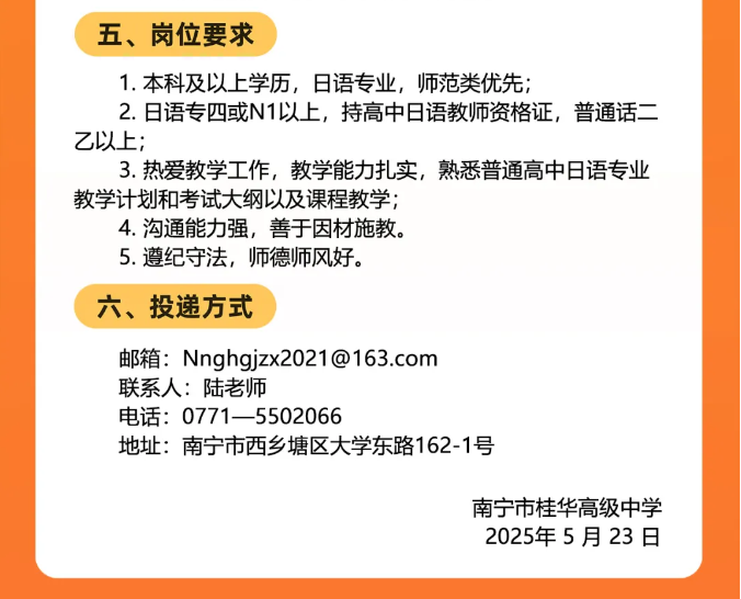 2025年廣西南寧市桂華高級中學(xué)面向社會公開招聘日語老師2人