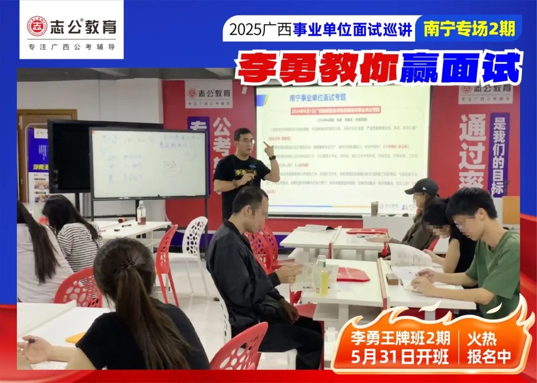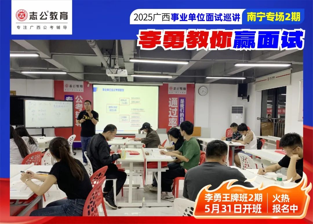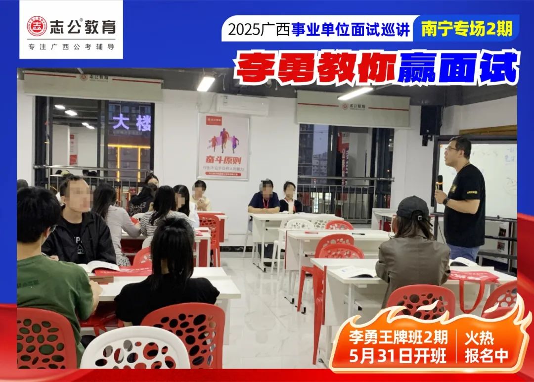 隨著2025廣西事業(yè)單位——李勇教你贏面試【南寧專場(chǎng)2期】線下巡講落幕,這場(chǎng)"面試攻堅(jiān)戰(zhàn)",不僅點(diǎn)燃了備考熱情,更讓志公教育"幫助人才實(shí)現(xiàn)更高質(zhì)量的就業(yè)"的使命,在八桂大地結(jié)出更多碩果。