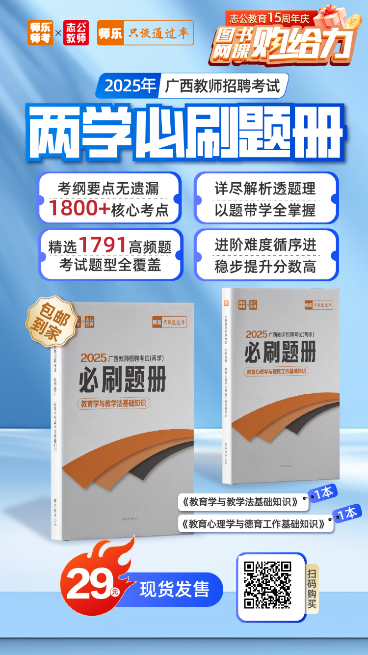 2025年廣西教師招聘考試兩學(xué)必刷題!特崗/桂林筆試必刷!