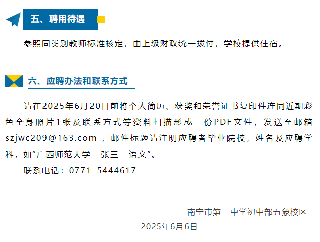 南寧市第三中學(xué)初中部五象校區(qū)2025-2026學(xué)年臨聘教師招聘啟事