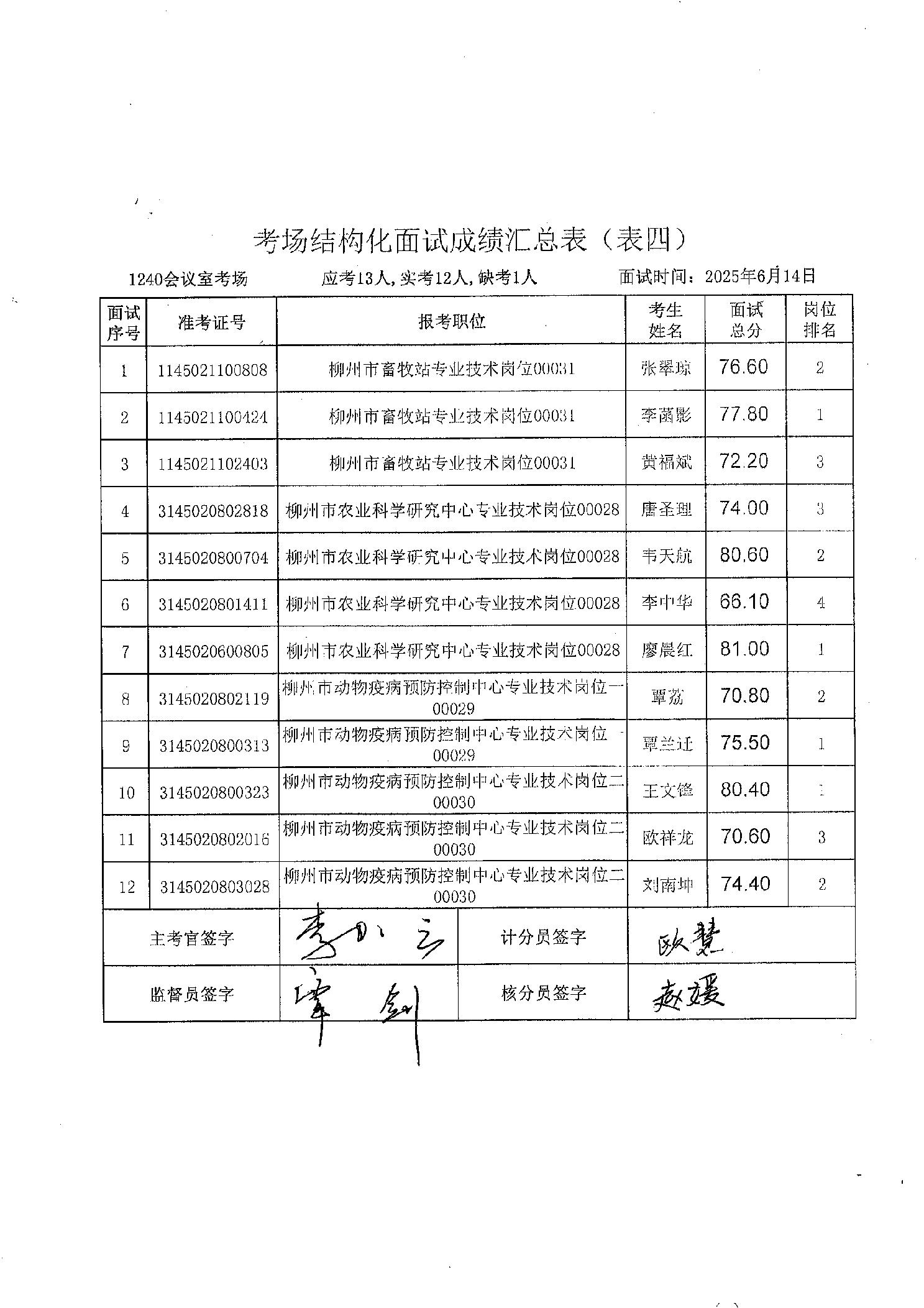 柳州市農(nóng)業(yè)農(nóng)村局2025年度上半年事業(yè)單位公開招聘面試成績(jī)