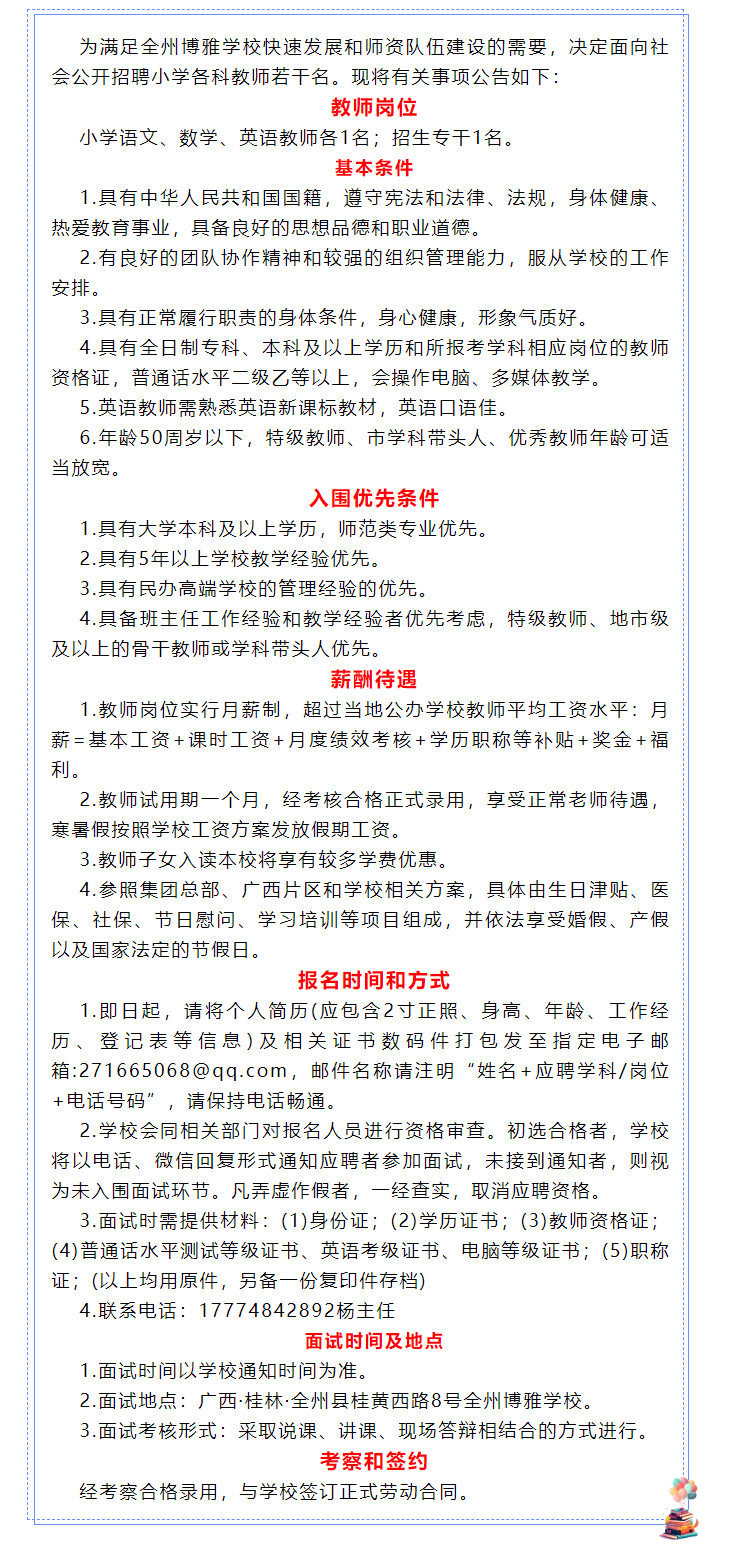 全州博雅學(xué)校面向全國誠聘教育精英若干人