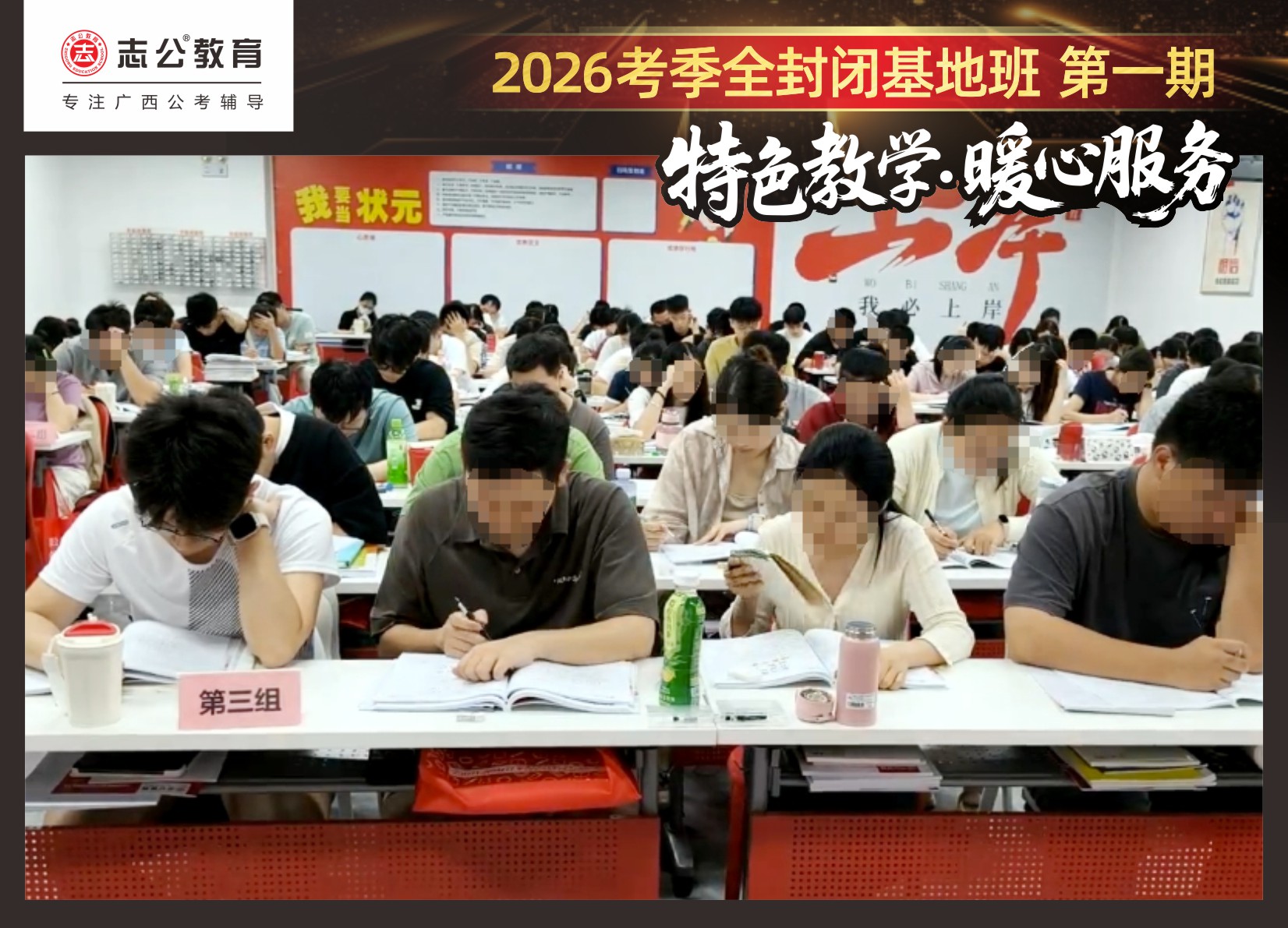 近日,志公教育基地班正式開(kāi)課后,學(xué)員們?nèi)孢M(jìn)入緊張而有序的封閉式備考狀態(tài)。為確保每一位學(xué)員都能在最佳狀態(tài)下高效備考,志公教育不僅提供了優(yōu)質(zhì)的教學(xué)資源和師資團(tuán)隊(duì),更從住宿環(huán)境、飲食健康、學(xué)習(xí)空間、紀(jì)律監(jiān)管、心理關(guān)懷、激勵(lì)機(jī)制等多個(gè)維度出發(fā),精心打造了一系列保障措施,確保每一位學(xué)員都能在最佳狀態(tài)下備考,真正實(shí)現(xiàn)“學(xué)得安心、住得舒心、吃得放心”。