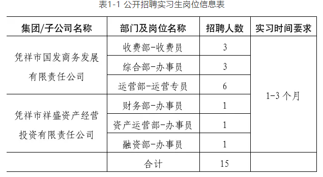 本次共計(jì)劃招聘憑祥市國(guó)際貿(mào)易開發(fā)集團(tuán)有限公司下屬企業(yè)實(shí)習(xí)生崗位15人。具體要求詳見《附件1:憑祥市國(guó)際貿(mào)易開發(fā)集團(tuán)有限公司2025年公開招聘暑期實(shí)習(xí)生崗位信息表》