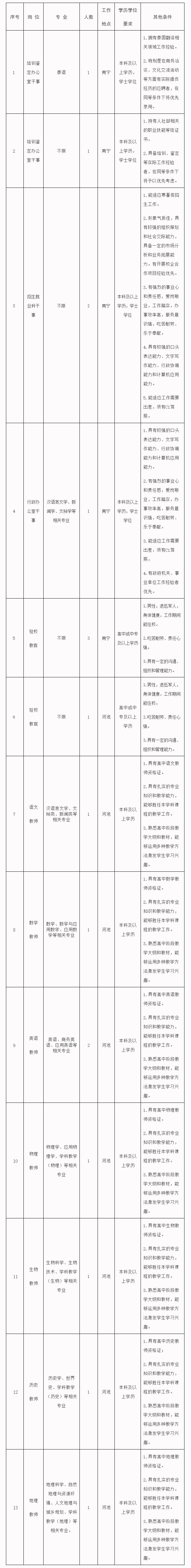 為滿足學(xué)校教學(xué)、管理和服務(wù)工作需要,現(xiàn)面向社會(huì)公開(kāi)招聘編外工作人員17人,現(xiàn)將有關(guān)事項(xiàng)公告如下: