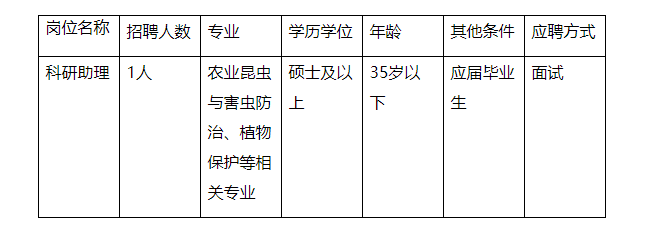 廣西農(nóng)業(yè)科學(xué)院植物保護研究所糧食作物害蟲防控團隊招聘編制外工作人員招聘1人