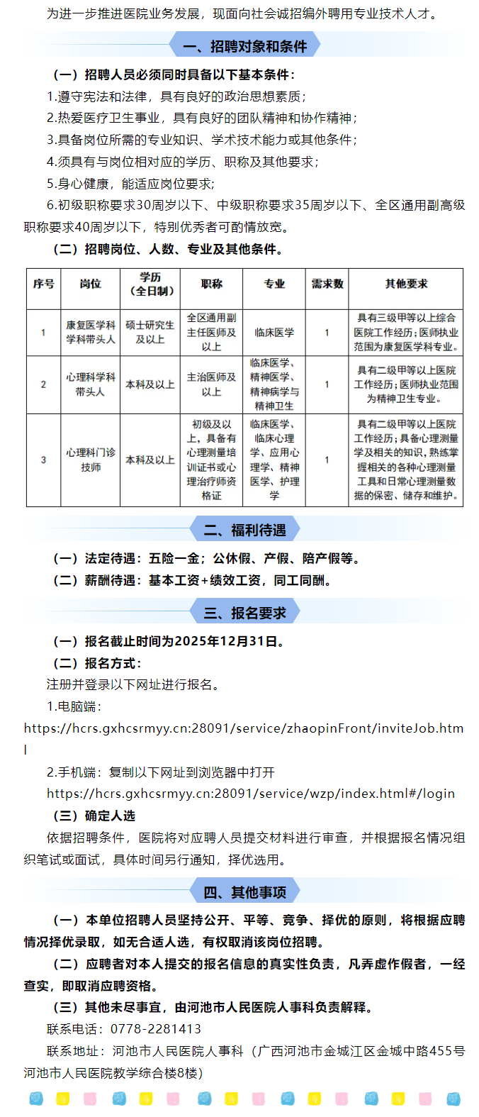 2025年河池市人民醫(yī)院公開招聘康復醫(yī)學科、心理科專業(yè)技術人才