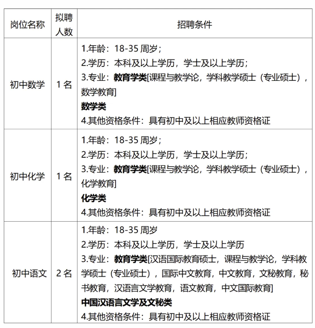 (六)18周歲以上、35周歲以下。有教學(xué)經(jīng)驗(yàn)豐富、碩士研究生或中級(jí)職稱(chēng)以上的應(yīng)聘人員,年齡可適當(dāng)放寬到45周歲。
