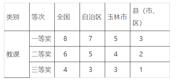 (5)現場教課比賽獲獎:參加教育行政部門或業(yè)務部門逐級選拔的縣以上的教課比賽獲得一、二、三等獎勵給予計分。此項最高不超過10分。具體計分如下: