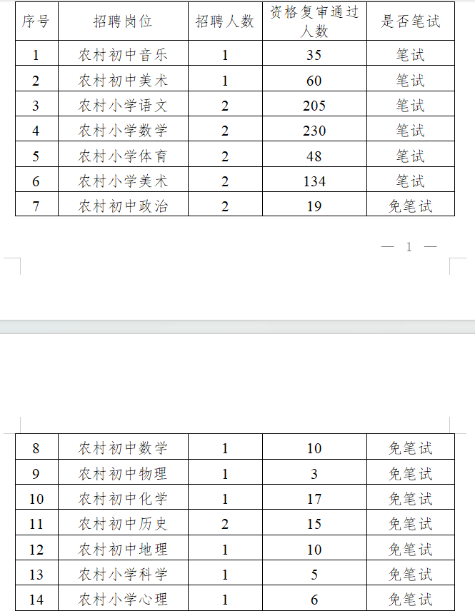 根據(jù)《桂林市雁山區(qū)2025年特崗教師招聘公告》要求“筆試按實(shí)際通過(guò)資格復(fù)審人數(shù)開(kāi)考;招聘崗位資格復(fù)審?fù)ㄟ^(guò)人數(shù)不足20人免筆試,資格復(fù)審?fù)ㄟ^(guò)人數(shù)20人以上(含20人,研究生及以上學(xué)歷不包含在內(nèi),研究生及以上學(xué)歷免筆試),需進(jìn)行筆試。”經(jīng)現(xiàn)場(chǎng)資格復(fù)審,桂林市雁山區(qū)2025年特崗教師招聘筆試、免筆試學(xué)科崗位情況如下: