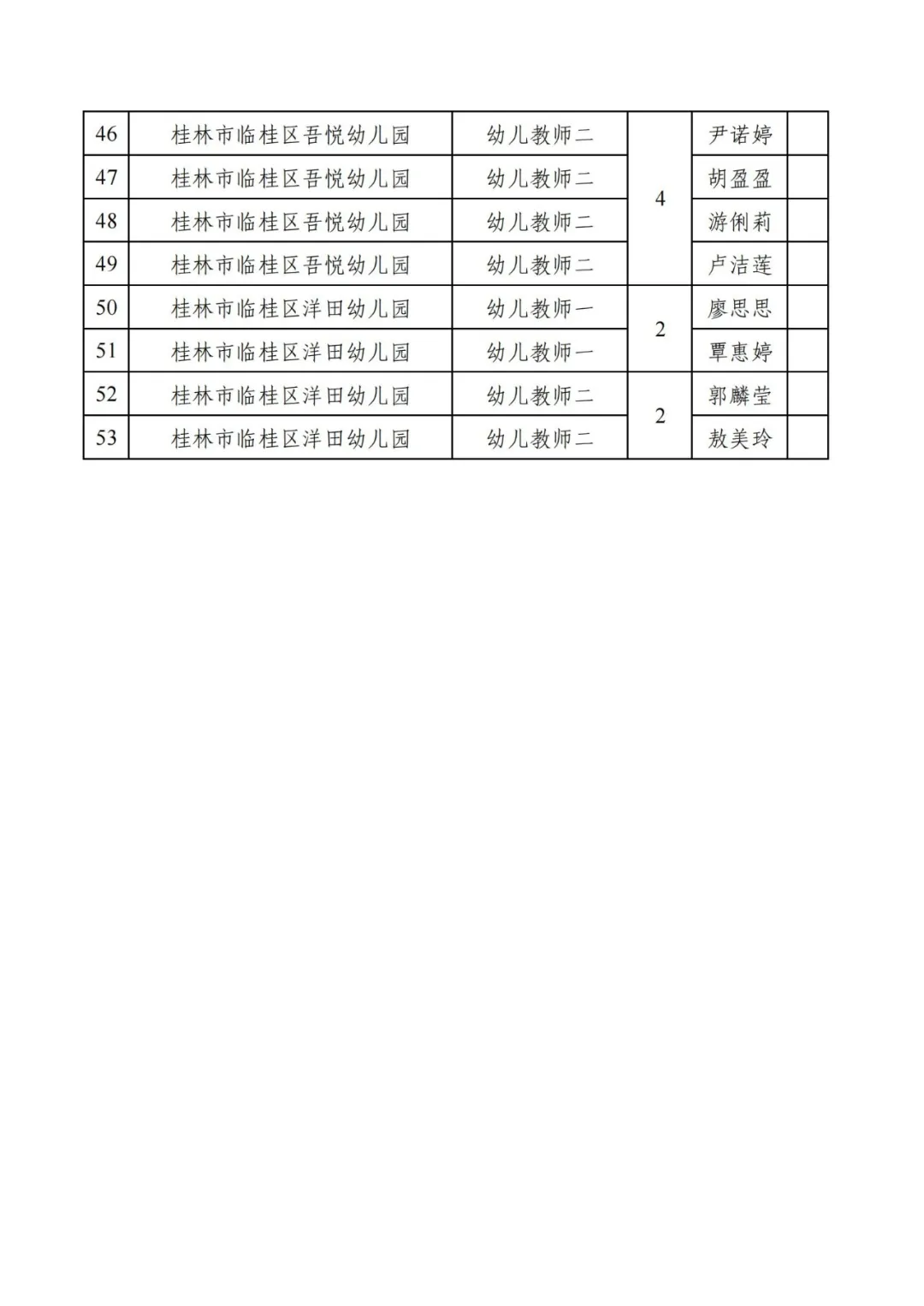 根據(jù)《桂林市2025年度公開招聘中小學教師公告》和《2025年桂林市臨桂區(qū)公開招聘中小學教師面試公告》規(guī)定,經網上報名審核、筆試,現(xiàn)場資格復審、面試等程序,現(xiàn)將2025年桂林市臨桂區(qū)公開招聘中小學教師進入考核人員名單予以公示,公示時間為2025年7月21日至25日。公示期間如有異議,請以書面形式并署真實姓名和聯(lián)系方式于7月25日前將反映材料送達臨桂區(qū)委教育工委辦公室或臨桂區(qū)教育局人事股。如實反映有關問題受法律保護。