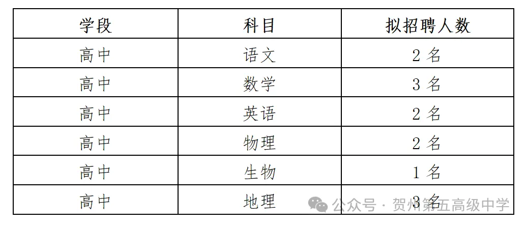 原文標(biāo)題:賀州第五高級中學(xué)2025年秋季學(xué)期招聘教師公告