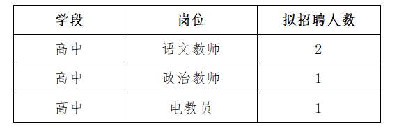 1.學(xué)科教師:大學(xué)本科學(xué)歷,專業(yè)符合相應(yīng)學(xué)科要求(有學(xué)士學(xué)位、高中教師資格證的優(yōu)先聘用);高校大四在校本科生可通過教育實習(xí)形式應(yīng)聘。
