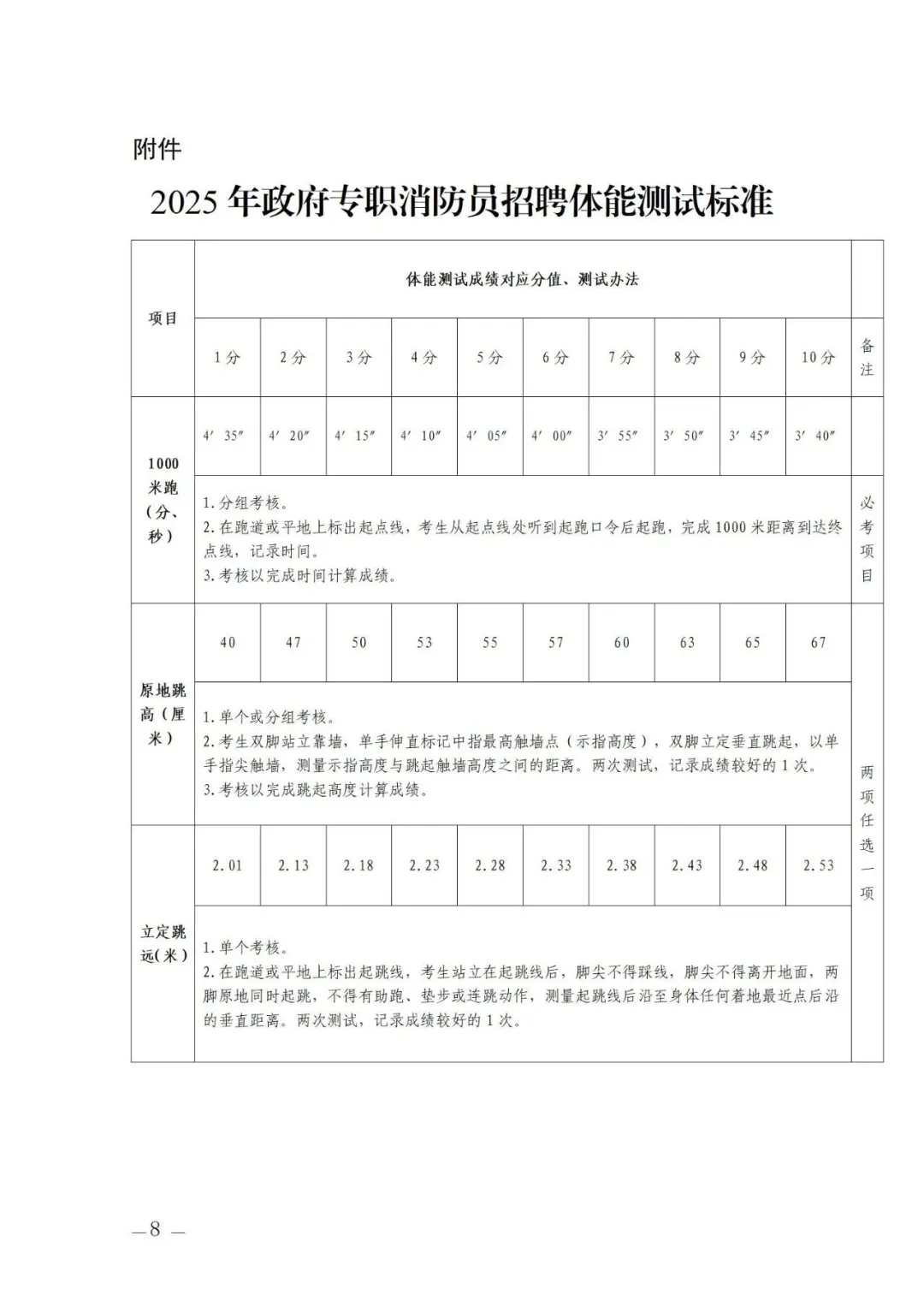 注意事項:應(yīng)聘人員須參加體能測試,并當場簽訂《天等縣消防救援大隊政府專職消防員招聘體能和崗位適應(yīng)性測試招聘對象承諾書》,體能測試有兩項及兩項以上不得分的視為不合格(標準參照附件)。未按時參加或因身體原因無法測試者,視為自動放棄。