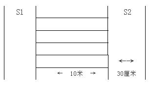 場地器材:10米長的直線跑道若干,在跑道的兩端線(S1和S2)外30厘米處各劃一條線(圖1)。木塊(5厘米×10厘米)每道3塊,其中2塊放在S2線外的橫線上,一塊放在S1線外的橫線上。秒表若干塊,使用前應(yīng)進(jìn)行校正。