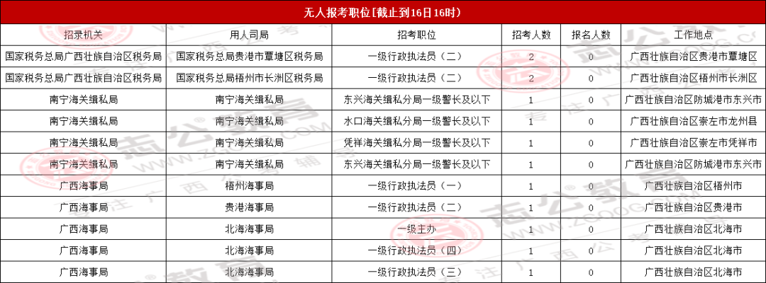 廣西各地市各職位報(bào)名動(dòng)態(tài)情況匯總