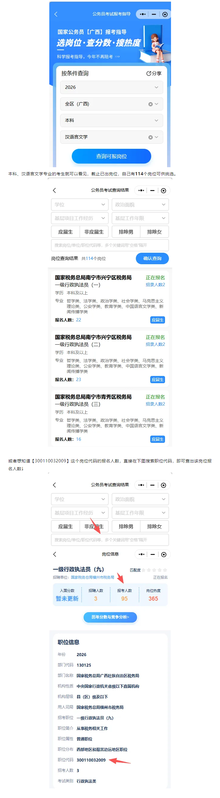 更多崗位報(bào)名詳細(xì)內(nèi)容請(qǐng)使用公考天眼查詢(xún),在這里,你能清晰查看各個(gè)崗位的官方報(bào)考人數(shù)、本系統(tǒng)崗位熱度,崗位報(bào)名條件,入面分?jǐn)?shù)和錄取分?jǐn)?shù),這些數(shù)據(jù)都是經(jīng)過(guò)精準(zhǔn)整理與分析的,能為你的選崗提供有力參考。