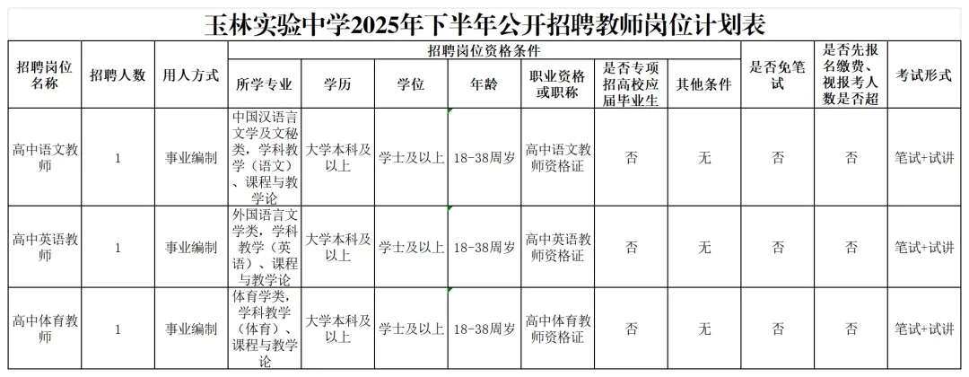 2025年玉林實驗中學(xué)下半年招聘教師3人