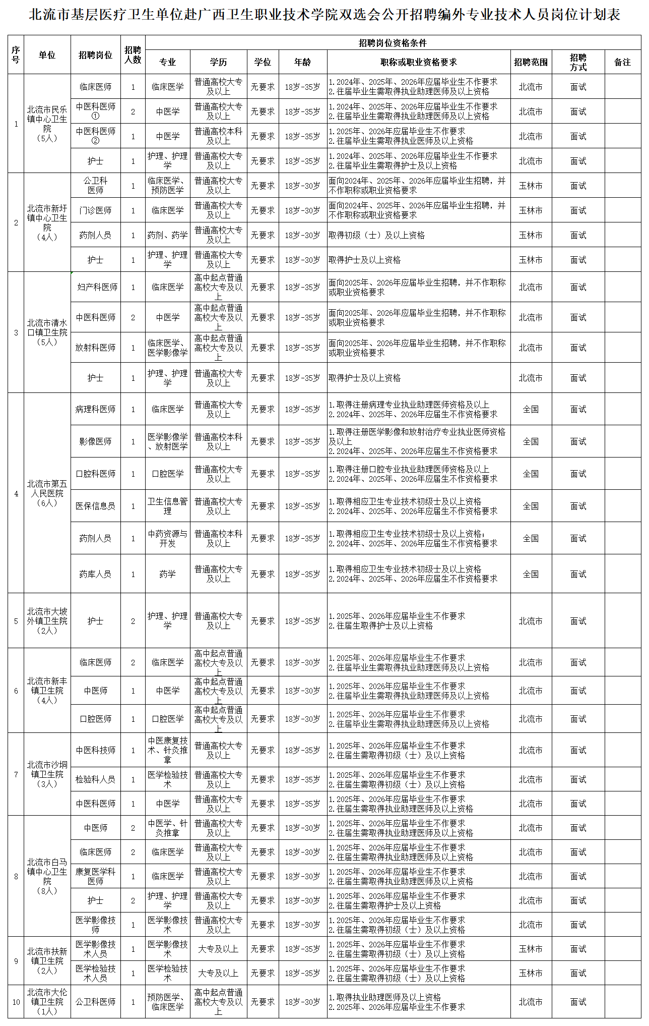 2025年北流市基層醫(yī)療衛(wèi)生單位赴廣西衛(wèi)生職業(yè)技術(shù)學(xué)院雙選會公開招聘編外專業(yè)技術(shù)人員公告