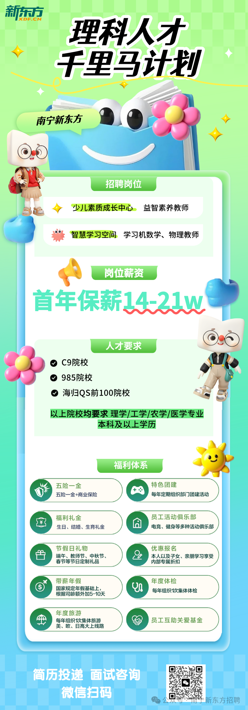 原文標(biāo)題:南寧新東方急招理科教師 | 首年保薪12-21萬(wàn) 雙休 五險(xiǎn)一金 年度帶薪旅游