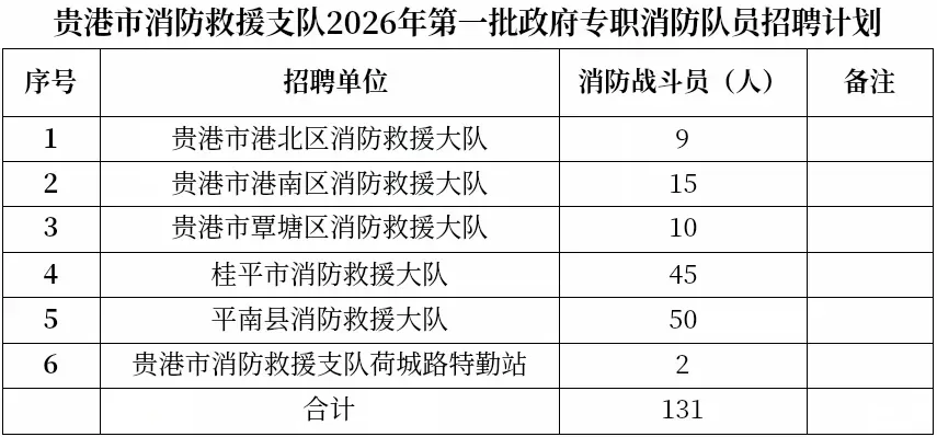 為滿足貴港市社會經(jīng)濟(jì)發(fā)展對消防力量的需求,有效提升社會災(zāi)害防控能力,貴港市消防救援支隊按照德才兼?zhèn)浜?ldquo;公開公正、平等自愿、競爭擇優(yōu)”的原則,面向社會公開招錄131名政府專職消防員?,F(xiàn)將有關(guān)事項公告如下: