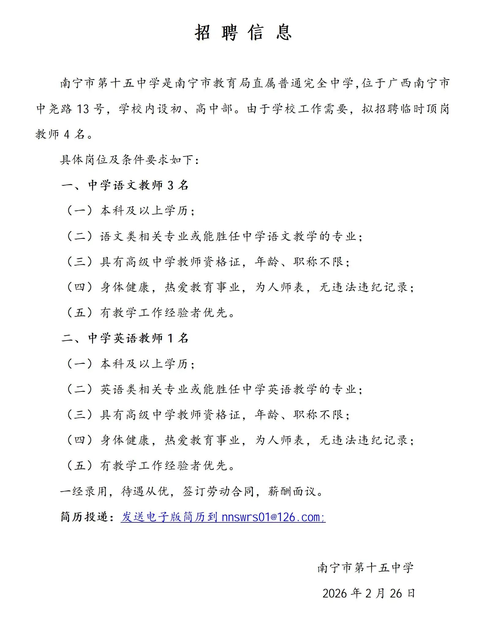 原文標(biāo)題:2026年南寧市第三十五中學(xué)招聘