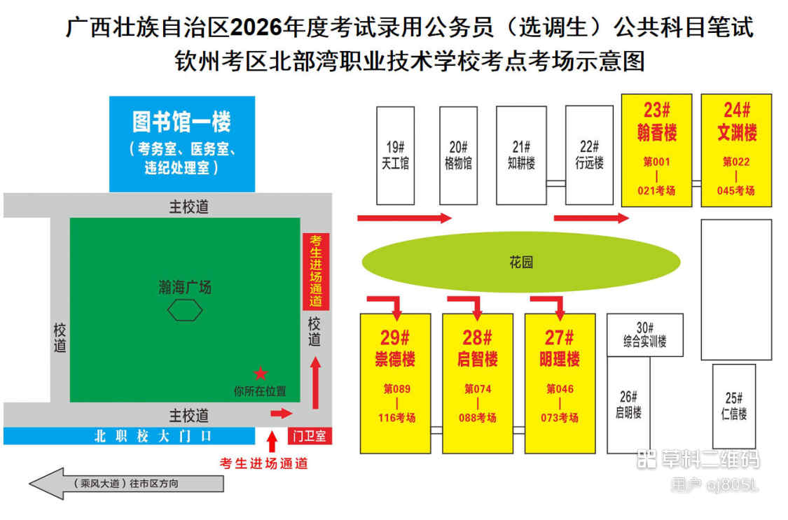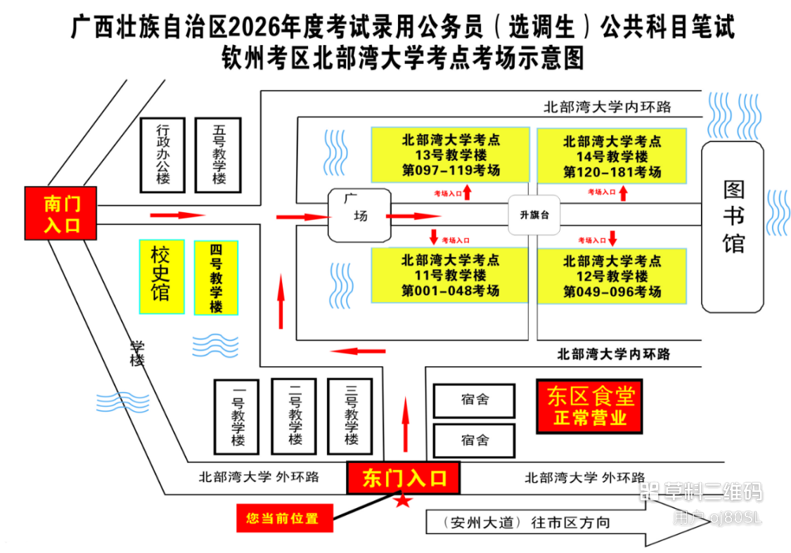 欽州考區(qū)共設(shè)三個考點(diǎn),分別為北部灣大學(xué)考點(diǎn)、北部灣職業(yè)技術(shù)學(xué)校考點(diǎn)、欽州市第五中學(xué)考點(diǎn)。(考點(diǎn)地址和具體考場安排請掃附后的二維碼查看)