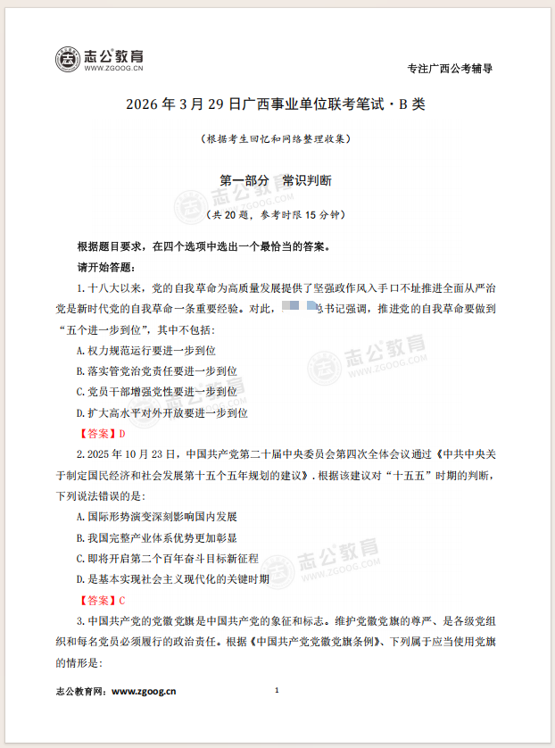 26廣西事筆ABCDE類科目均已筆試結(jié)束