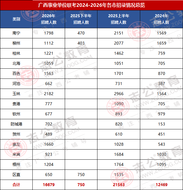 2026廣西事考招錄16679人,較2025上半年廣西事業(yè)單位招錄縮招了4884人;招錄波動(dòng)大、但是機(jī)會集中,醫(yī)療E類、綜合A 類為招錄主力;廣西區(qū)直、南寧、桂林等崗位競爭激烈,是應(yīng)屆生與社會考生圓夢重要賽道。
